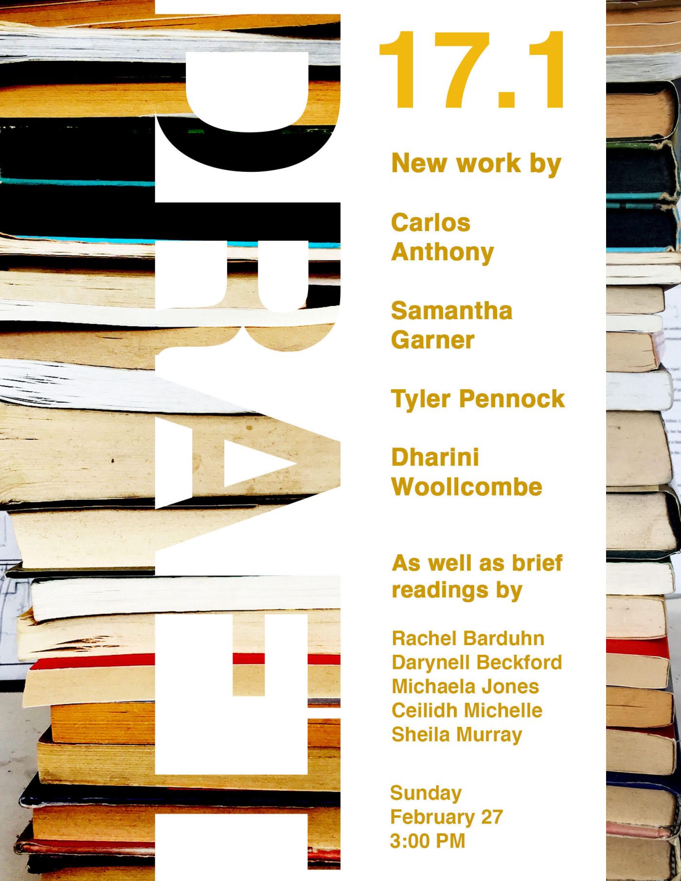 There will also be five additional authors who will be sharing brief readings: Rachel Barduhn, Darynell Beckford, Michaela Jones, Ceilidh Michelle and Sheila Murray.